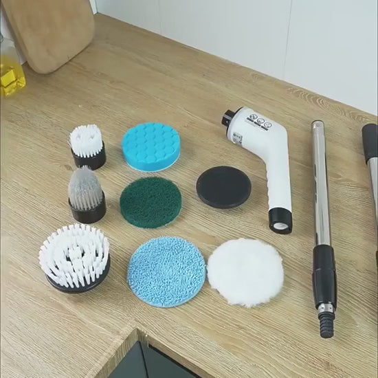Transforma tu rutina de limpieza con este potente cepillo eléctrico inalámbrico que elimina manchas, suciedad y grasa con el mínimo esfuerzo. Equipado con 9 cabezales intercambiables y mango extensible, es la herramienta perfecta para mantener tu hogar impecable: cocina, baño, suelos, baldosas, coche y mucho más.