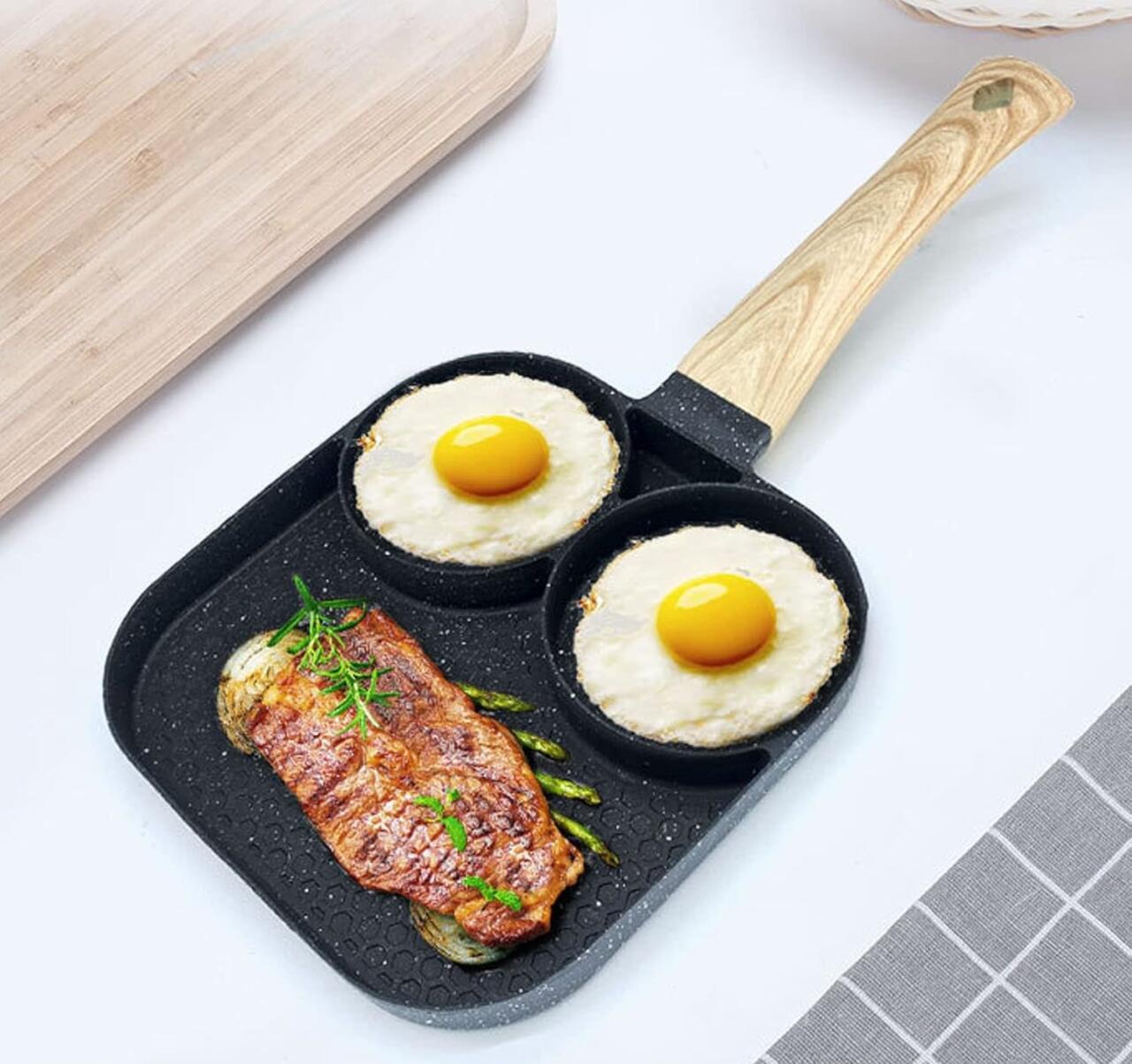 Es la solución perfecta para cocinar de forma práctica, rápida y organizada. Gracias a sus tres espacios independientes, permite preparar distintos alimentos al mismo tiempo sin mezclar sabores, ideal para desayunos completos, comidas variadas y recetas rápidas del día a día.
