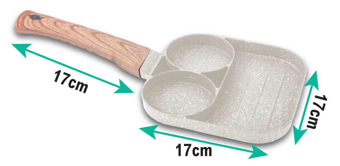 El diseño incluye un mango resistente a quemaduras, seguro y ergonómico, que aporta un agarre firme durante toda la cocción. Con un área de cocinado de 17 x 17 cm, este sartén compacto es ideal para cocinas pequeñas o para quienes desean optimizar el tiempo sin sacrificar resultados.