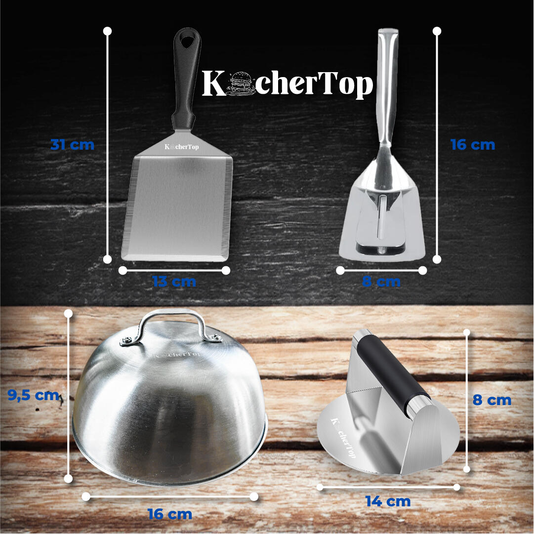 - Prensa smash para aplastar y sellar la carne